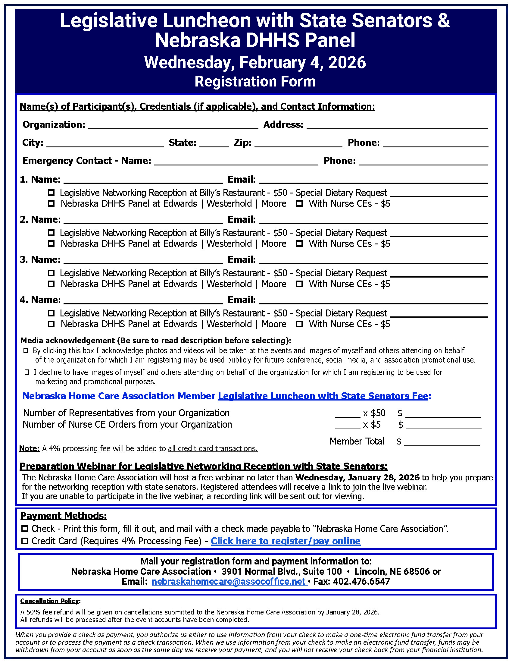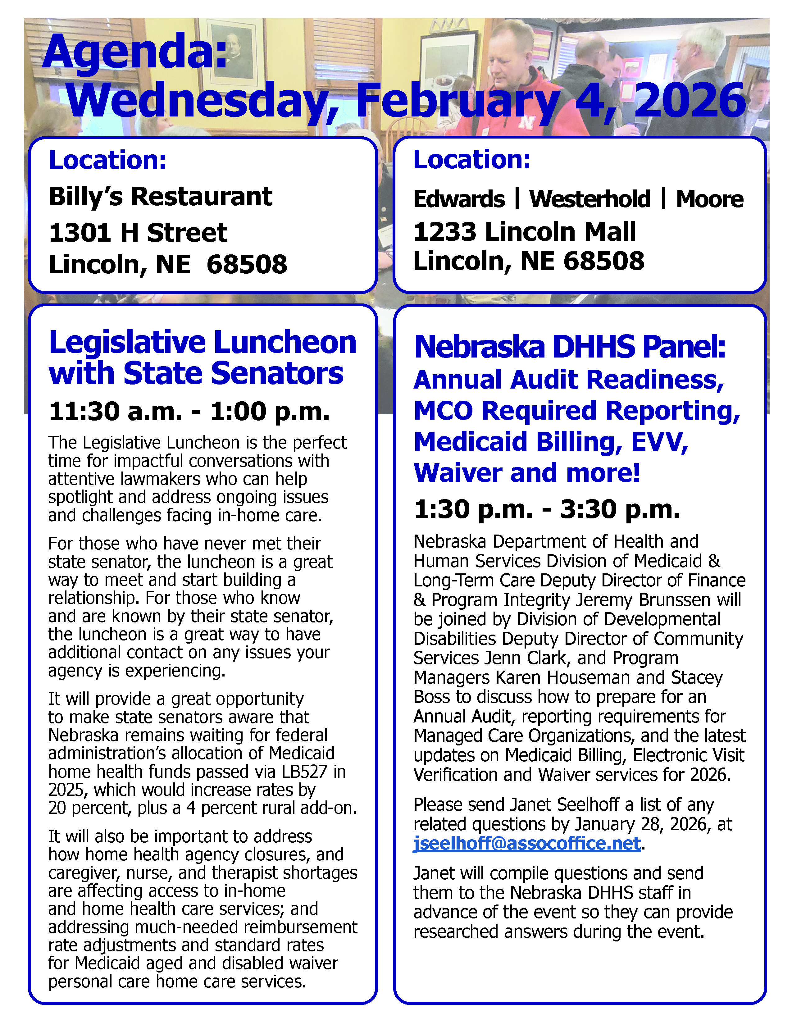 Legislative Luncheon and Nebraska DHHS Panel Wednesday, February 4, 2026
